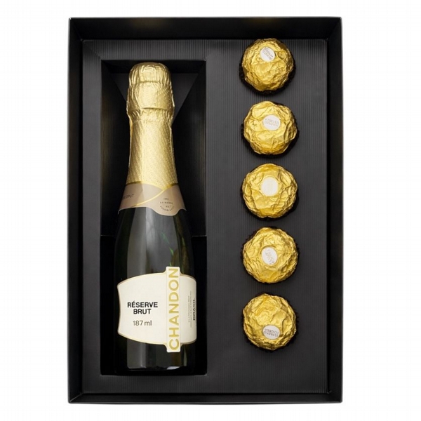 Chandon Baby + Ferrero Rocher em uma caixa elegante.