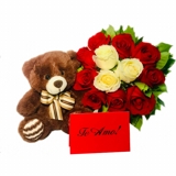 Buquê 12 Rosas com Urso de Pelúcia e Mensagem