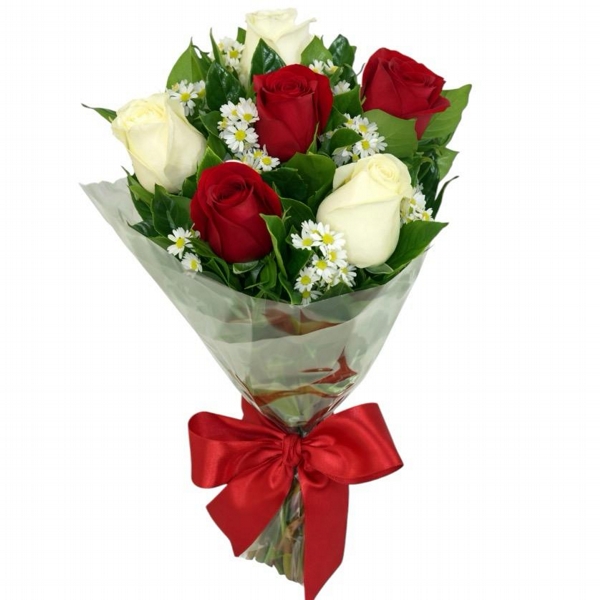 Buquê Amor e Harmonia Rosas Brancas e Vermelhas
