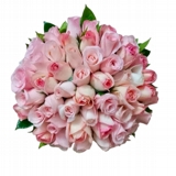 Este maravilhoso buquê (formato redondo) é confeccionado com astromelias e rosas com acabamento de fita de cetim no cabo