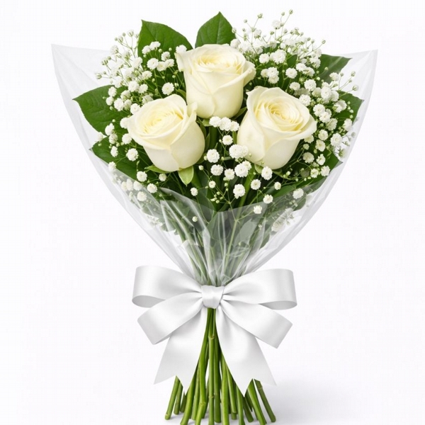 Clássico e cheio de significado, este buquê é composto por 3 rosas Amarelas, com folhagens e detalhes de mosquitinho, finalizado com papel celofane e laço de fita.