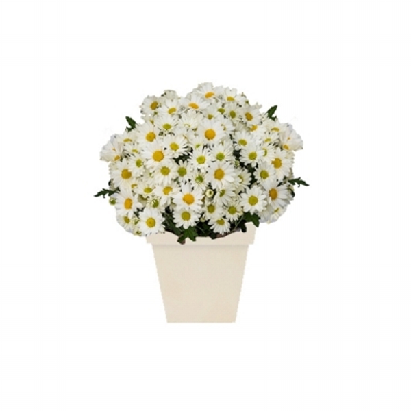 Lindo vaso de mini margarida branca, representa a pureza, a inocência, a sensibilidade, a infância e a juventude, o amor e também a paz, a bondade e o afeto.