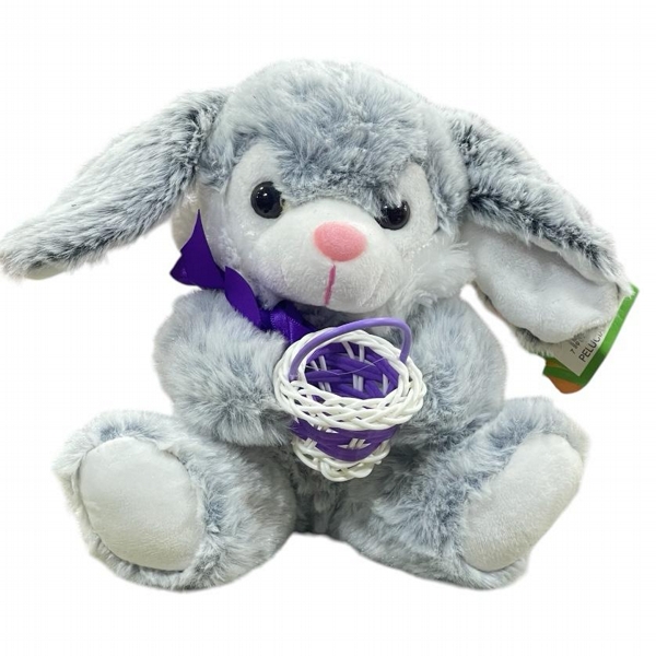 Lindo e muito fofinho coelho de pelúcia super macio e cestinha de vime