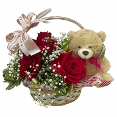 Arranjo com 12 Rosas Vermelhas no Vaso de Vidro