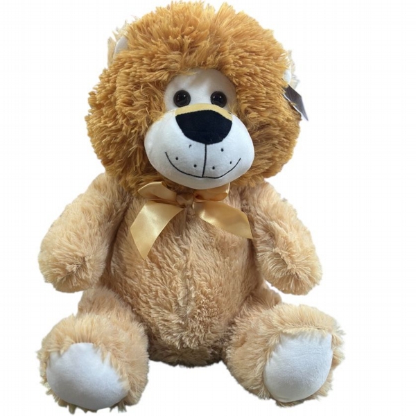 Encante-se com a doçura e o charme deste leão de pelúcia.
