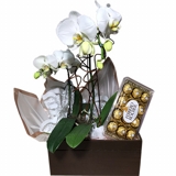 Lindo vaso de Orquídea Phalaenopsis Azul com 4 hastes e em vaso de vidro